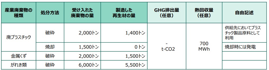 ・処分を行う廃棄物量に占める再資源化を実施すべき量の割合に関する目標や循環型社会に関連する温室効果ガス