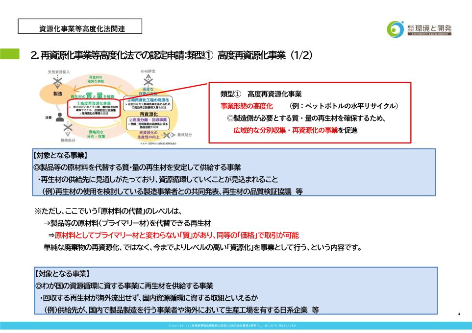 - 再資源化事業等の高度化に係る認定申請:各類型の解説